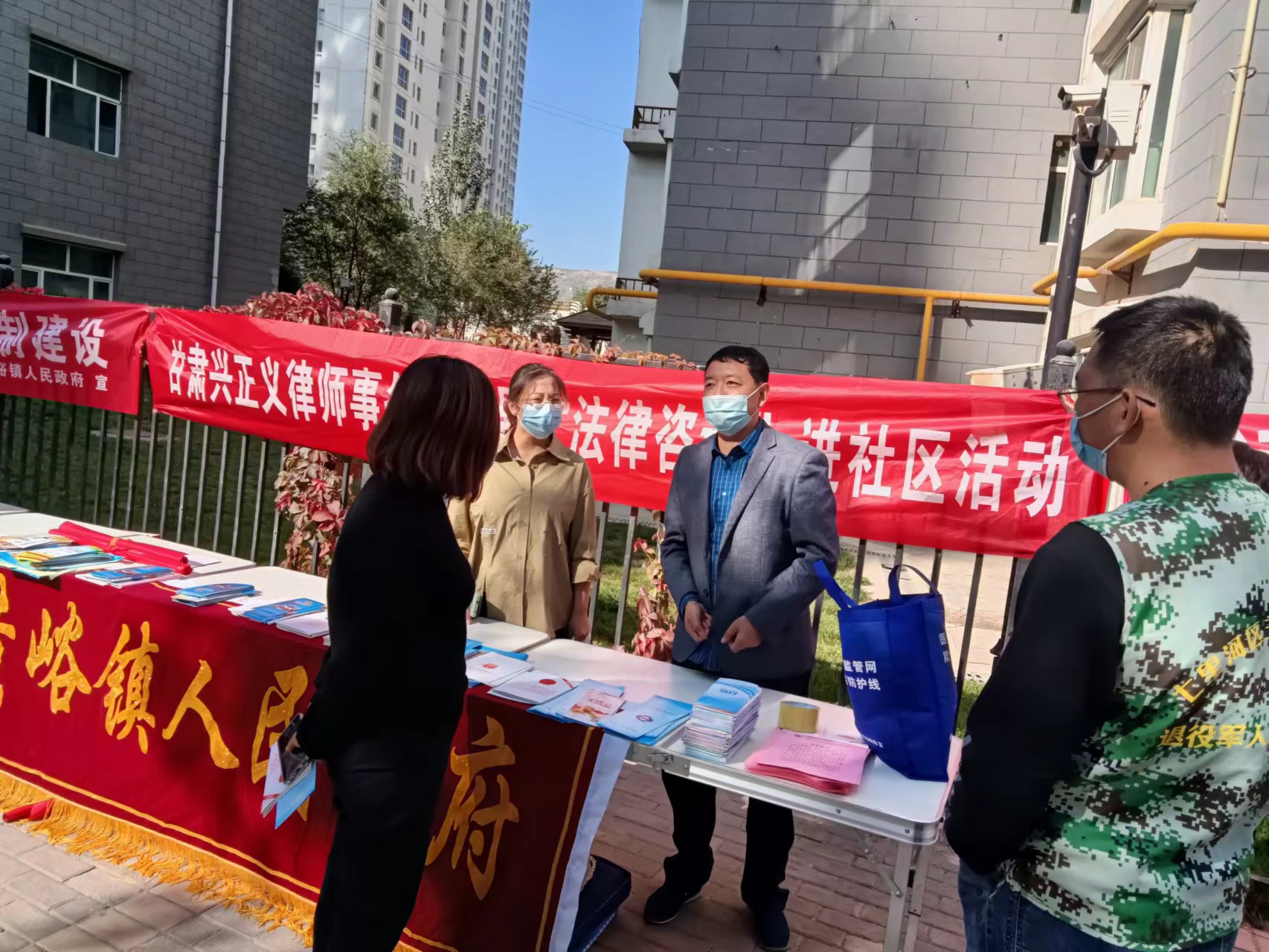 为喜迎二十大,庆祝国庆节。2022年9月28日上午,甘肃兴正义律师事务所李学军、杜琴、丁强三位律师前往七里河区黄峪镇黄峪新区安置点。面向“一村一居”法律顾问单位——黄峪镇王家庄、邵家洼、鲁家、尖山等村的村民开展法律宣传活动,现场宣传《民法典》,发放法律宣传册,并解答村民关心的法律问题。